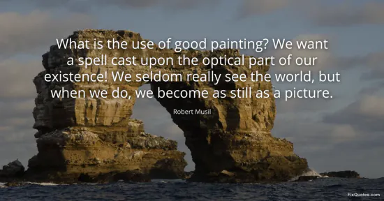 Musil, Robert. (2026, January 16). What is the use of good painting? We want a spell cast upon the optical part of our existence! We seldom really see the world, but when we do, we become as still as a picture. FixQuotes. https://fixquotes.com/quotes/what-is-the-use-of-good-painting-we-want-a-spell-116243/