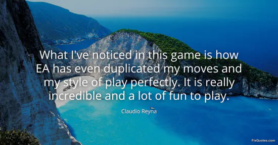 Reyna, Claudio. "What I've noticed in this game is how EA has even duplicated my moves and my style of play perfectly. It is really incredible and a lot of fun to play." FixQuotes. January 16, 2026. https://fixquotes.com/quotes/what-ive-noticed-in-this-game-is-how-ea-has-even-101957/.