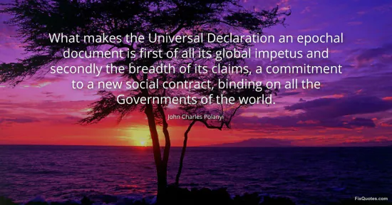 Polanyi, John Charles. (2026, January 17). What makes the Universal Declaration an epochal document is first of all its global impetus and secondly the breadth of its claims, a commitment to a new social contract, binding on all the Governments of the world. FixQuotes. https://fixquotes.com/quotes/what-makes-the-universal-declaration-an-epochal-80416/