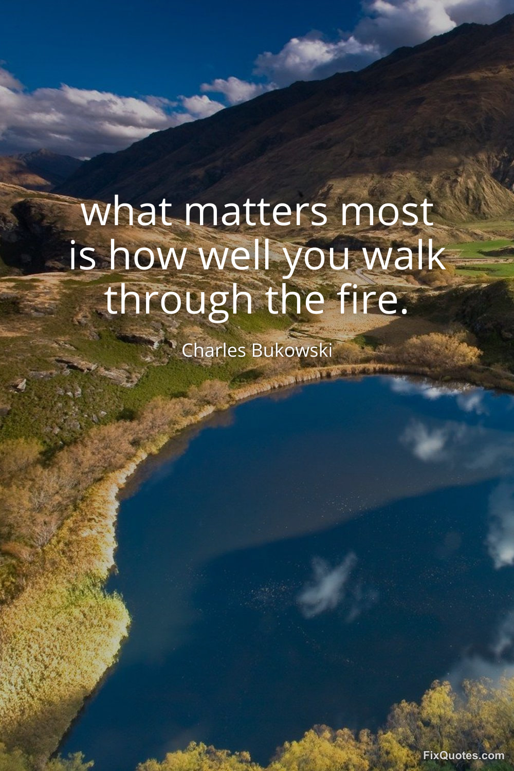 Bukowski, Charles. (2026, February 10). what matters most is how well you walk through the fire. FixQuotes. https://fixquotes.com/quotes/what-matters-most-is-how-well-you-walk-through-185122/