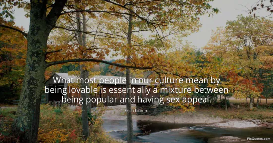 Fromm, Erich. (2026, January 15). What most people in our culture mean by being lovable is essentially a mixture between being popular and having sex appeal. FixQuotes. https://fixquotes.com/quotes/what-most-people-in-our-culture-mean-by-being-23545/