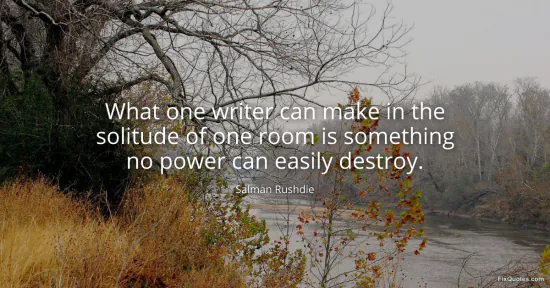 Rushdie, Salman. "What one writer can make in the solitude of one room is something no power can easily destroy." FixQuotes. January 15, 2026. https://fixquotes.com/quotes/what-one-writer-can-make-in-the-solitude-of-one-153247/.
