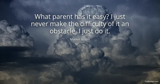 Matlin, Marlee. (2026, January 16). What parent has it easy? I just never make the difficulty of it an obstacle. I just do it. FixQuotes. https://fixquotes.com/quotes/what-parent-has-it-easy-i-just-never-make-the-108175/