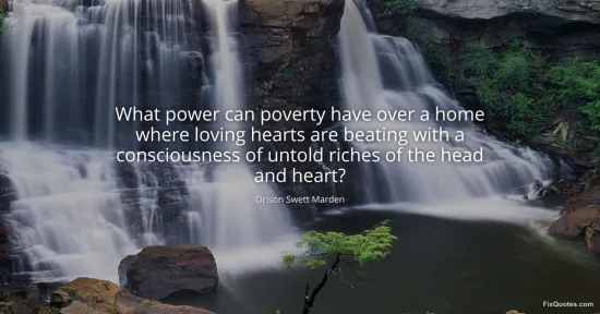 That’s classic Marden, a late-19th/early-20th century self-help moralist writing in a moment when industrial capitalism made economic instability feel both widespread and personal. His intent is motivational, even corrective: he wants families to interpret hardship as a test of character rather than a permanent identity. The phrase “consciousness of untold riches” matters because it shifts the battleground from the bank account to perception. If you can maintain an inner surplus - education, tenderness, aspiration - you can turn deprivation into something like a temporary weather system, not the climate.