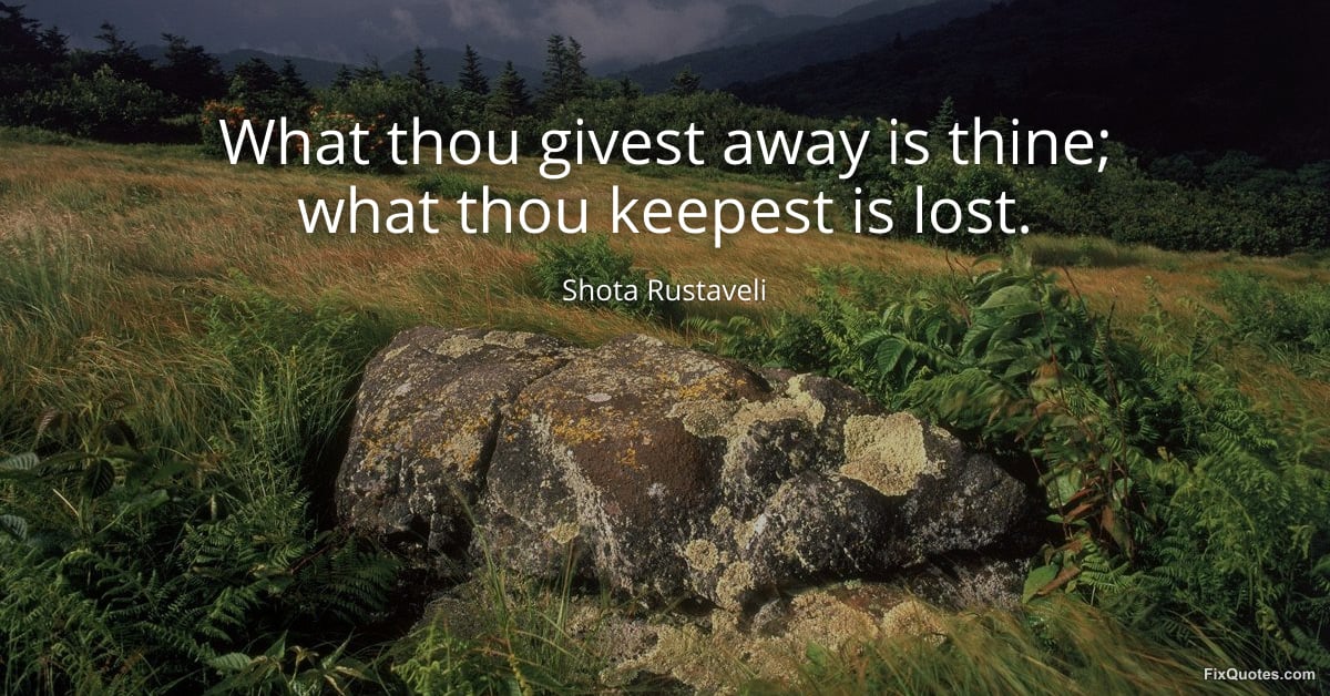 Rustaveli, Shota. "What thou givest away is thine; what thou keepest is lost." FixQuotes. February 23, 2026. https://fixquotes.com/quotes/what-thou-givest-away-is-thine-what-thou-keepest-185651/.
