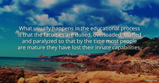 "What usually happens in the educational process is that the faculties are dulled, overloaded, stuffed and paralyzed so that by the time most people are mature they have lost their innate capabilities"