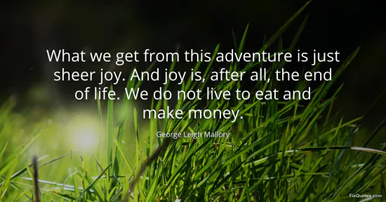 Mallory, George Leigh. (2026, February 8). What we get from this adventure is just sheer joy. And joy is, after all, the end of life. We do not live to eat and make money. FixQuotes. https://fixquotes.com/quotes/what-we-get-from-this-adventure-is-just-sheer-joy-136236/