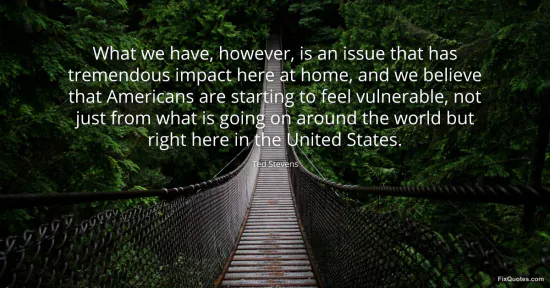 Stevens, Ted. (2026, January 17). What we have, however, is an issue that has tremendous impact here at home, and we believe that Americans are starting to feel vulnerable, not just from what is going on around the world but right here in the United States. FixQuotes. https://fixquotes.com/quotes/what-we-have-however-is-an-issue-that-has-63657/