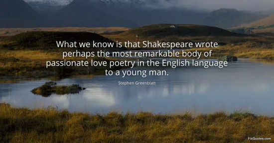 Greenblatt, Stephen. (2026, January 16). What we know is that Shakespeare wrote perhaps the most remarkable body of passionate love poetry in the English language to a young man. FixQuotes. https://fixquotes.com/quotes/what-we-know-is-that-shakespeare-wrote-perhaps-94875/