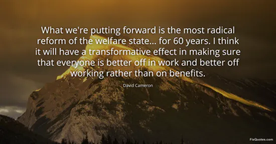 Cameron, David. (2026, January 17). What we're putting forward is the most radical reform of the welfare state... for 60 years. I think it will have a transformative effect in making sure that everyone is better off in work and better off working rather than on benefits. FixQuotes. https://fixquotes.com/quotes/what-were-putting-forward-is-the-most-radical-52319/