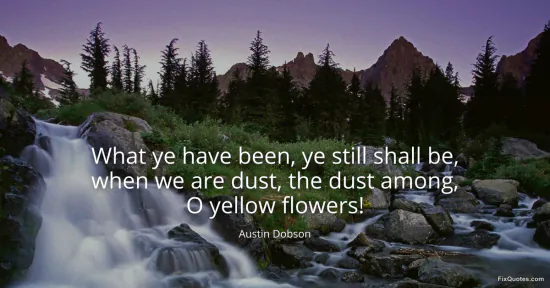 Dobson, Austin. "What ye have been ye still shall be, When we are dust the dust among, O yellow flowers!" FixQuotes. January 17, 2026. https://fixquotes.com/quotes/what-ye-have-been-ye-still-shall-be-when-we-are-64029/.