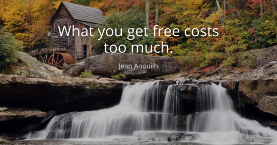 Anouilh, Jean. (2026, January 16). What you get free costs too much. FixQuotes. https://fixquotes.com/quotes/what-you-get-free-costs-too-much-86168/