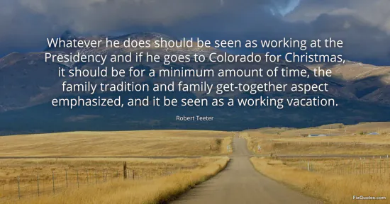 Teeter, Robert. (2026, January 16). Whatever he does should be seen as working at the Presidency and if he goes to Colorado for Christmas, it should be for a minimum amount of time, the family tradition and family get-together aspect emphasized, and it be seen as a working vacation. FixQuotes. https://fixquotes.com/quotes/whatever-he-does-should-be-seen-as-working-at-the-83637/