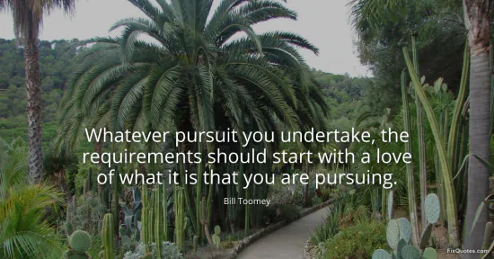 Toomey, Bill. "Whatever pursuit you undertake, the requirements should start with a love of what it is that you are pursuing." FixQuotes. January 17, 2026. https://fixquotes.com/quotes/whatever-pursuit-you-undertake-the-requirements-43542/.