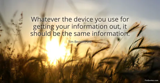 Berners-Lee, Tim. "Whatever the device you use for getting your information out, it should be the same information." FixQuotes. January 17, 2026. https://fixquotes.com/quotes/whatever-the-device-you-use-for-getting-your-34667/.