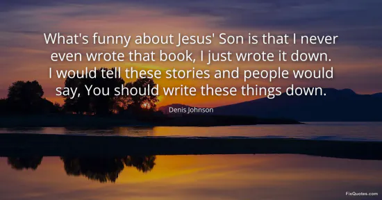 Johnson, Denis. (2026, January 18). What's funny about Jesus' Son is that I never even wrote that book, I just wrote it down. I would tell these stories and people would say, You should write these things down. FixQuotes. https://fixquotes.com/quotes/whats-funny-about-jesus-son-is-that-i-never-even-3952/