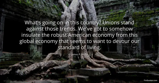 Hoffa, James P. (2026, January 16). What's going on in this country? Unions stand against those trends. We've got to somehow insulate the robust American economy from this global economy that seems to want to devour our standard of living. FixQuotes. https://fixquotes.com/quotes/whats-going-on-in-this-country-unions-stand-85215/
