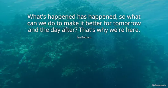 Botham, Ian. "What's happened has happened, so what can we do to make it better for tomorrow and the day after? That's why we're here." FixQuotes. January 15, 2026. https://fixquotes.com/quotes/whats-happened-has-happened-so-what-can-we-do-to-50764/.