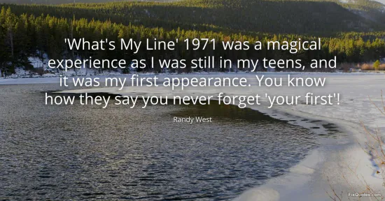 West, Randy. "'What's My Line' 1971 was a magical experience as I was still in my teens, and it was my first appearance. You know how they say you never forget 'your first'!" FixQuotes. January 15, 2026. https://fixquotes.com/quotes/whats-my-line-1971-was-a-magical-experience-as-i-144869/.