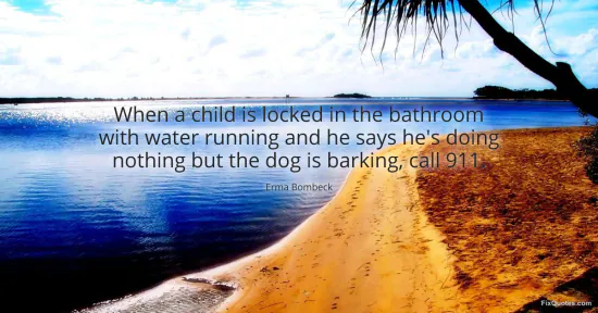 Bombeck, Erma. "When a child is locked in the bathroom with water running and he says he's doing nothing but the dog is barking, call 911." FixQuotes. Accessed February 1, 2026. https://fixquotes.com/quotes/when-a-child-is-locked-in-the-bathroom-with-water-19397/.