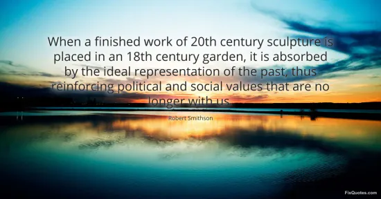Smithson, Robert. (2026, January 16). When a finished work of 20th century sculpture is placed in an 18th century garden, it is absorbed by the ideal representation of the past, thus reinforcing political and social values that are no longer with us. FixQuotes. https://fixquotes.com/quotes/when-a-finished-work-of-20th-century-sculpture-is-97002/