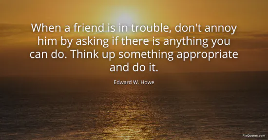 Howe, Edward W. "When a friend is in trouble, don't annoy him by asking if there is anything you can do. Think up something appropriate and do it." FixQuotes. January 16, 2026. https://fixquotes.com/quotes/when-a-friend-is-in-trouble-dont-annoy-him-by-128476/.