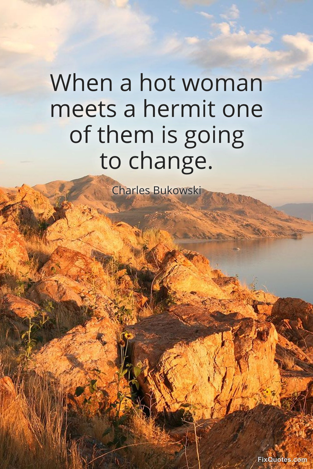 Bukowski, Charles. (2026, February 10). When a hot woman meets a hermit one of them is going to change. FixQuotes. https://fixquotes.com/quotes/when-a-hot-woman-meets-a-hermit-one-of-them-is-185165/