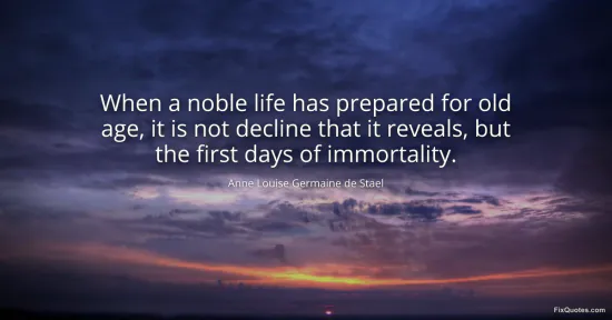 Stael, Anne Louise Germaine de. "When a noble life has prepared for old age, it is not decline that it reveals, but the first days of immortality." FixQuotes. January 17, 2026. https://fixquotes.com/quotes/when-a-noble-life-has-prepared-for-old-age-it-is-57320/.