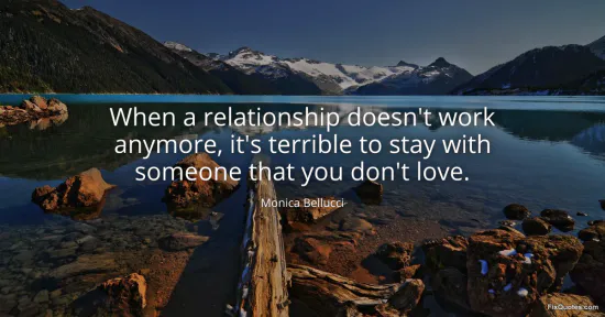 Bellucci’s line has the blunt clarity of someone who’s watched romance get mythologized into a life sentence. “Doesn’t work anymore” is deliberately practical, almost mechanical language for something we’re taught to treat as sacred. She’s not talking about a single fight or a bad week; she’s naming the slow, accumulating reality that a relationship can stop being a living thing and become an obligation. The phrase “it’s terrible” lands like a moral verdict, but not the sanctimonious kind. It’s a reminder that staying can be its own form of harm.