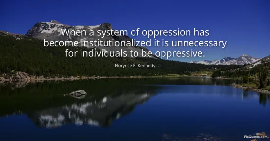 Kennedy, Florynce R. "When a system of oppression has become institutionalized it is unnecessary for individuals to be oppressive." FixQuotes. January 15, 2026. https://fixquotes.com/quotes/when-a-system-of-oppression-has-become-168870/.