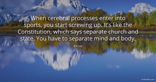 Lee, Bill. "When cerebral processes enter into sports, you start screwing up. It's like the Constitution, which says separate church and state. You have to separate mind and body." FixQuotes. January 17, 2026. https://fixquotes.com/quotes/when-cerebral-processes-enter-into-sports-you-43991/.