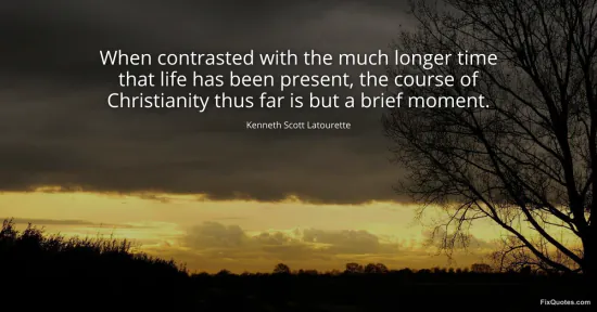 Latourette, Kenneth Scott. "When contrasted with the much longer time that life has been present, the course of Christianity thus far is but a brief moment." FixQuotes. January 17, 2026. https://fixquotes.com/quotes/when-contrasted-with-the-much-longer-time-that-69062/.