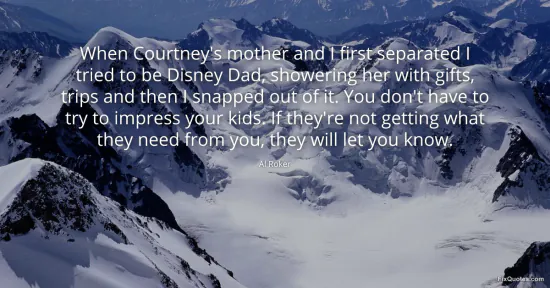 Roker, Al. (2026, January 17). When Courtney's mother and I first separated I tried to be Disney Dad, showering her with gifts, trips and then I snapped out of it. You don't have to try to impress your kids. If they're not getting what they need from you, they will let you know. FixQuotes. https://fixquotes.com/quotes/when-courtneys-mother-and-i-first-separated-i-63387/