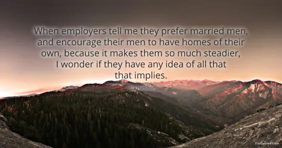 Hamilton, Alice. (2026, January 17). When employers tell me they prefer married men, and encourage their men to have homes of their own, because it makes them so much steadier, I wonder if they have any idea of all that that implies. FixQuotes. https://fixquotes.com/quotes/when-employers-tell-me-they-prefer-married-men-42470/