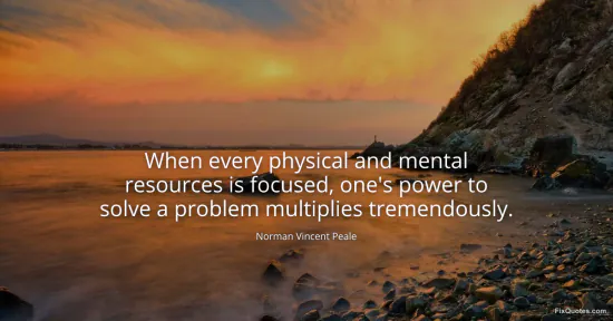 Peale, Norman Vincent. "When every physical and mental resources is focused, one's power to solve a problem multiplies tremendously." FixQuotes. January 17, 2026. https://fixquotes.com/quotes/when-every-physical-and-mental-resources-is-41834/.
