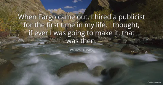 Macy, William H. "When Fargo came out, I hired a publicist for the first time in my life. I thought, if ever I was going to make it, that was then." FixQuotes. January 16, 2026. https://fixquotes.com/quotes/when-fargo-came-out-i-hired-a-publicist-for-the-97882/.