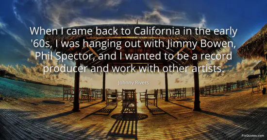 Rivers, Johnny. (2026, February 17). When I came back to California in the early '60s, I was hanging out with Jimmy Bowen, Phil Spector, and I wanted to be a record producer and work with other artists. FixQuotes. https://fixquotes.com/quotes/when-i-came-back-to-california-in-the-early-60s-i-93010/