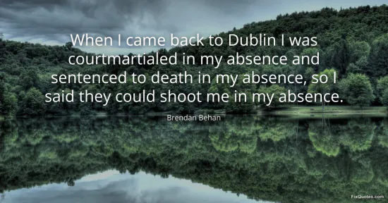 Behan, Brendan. (2026, January 14). When I came back to Dublin I was courtmartialed in my absence and sentenced to death in my absence, so I said they could shoot me in my absence. FixQuotes. https://fixquotes.com/quotes/when-i-came-back-to-dublin-i-was-courtmartialed-29205/
