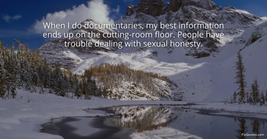Dodson, Betty. (2026, January 16). When I do documentaries, my best information ends up on the cutting-room floor. People have trouble dealing with sexual honesty. FixQuotes. https://fixquotes.com/quotes/when-i-do-documentaries-my-best-information-ends-139228/