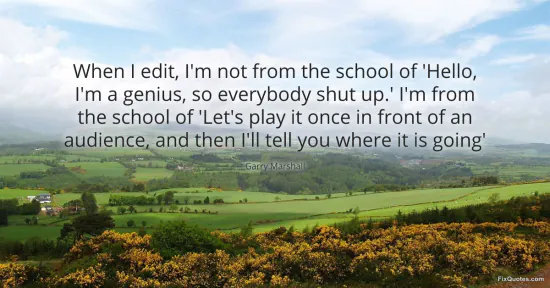 Marshall, Garry. (2026, February 17). When I edit, I'm not from the school of 'Hello, I'm a genius, so everybody shut up.' I'm from the school of 'Let's play it once in front of an audience, and then I'll tell you where it is going'. FixQuotes. https://fixquotes.com/quotes/when-i-edit-im-not-from-the-school-of-hello-im-a-111248/