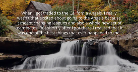 Ryan, Nolan. (2026, January 17). When I got traded to the California Angels, I really wasn't that excited about going to the Angels because it meant changing leagues and also a whole new set of teammates. But shortly after I got there I realized that it was one of the best things that ever happened to me. FixQuotes. https://fixquotes.com/quotes/when-i-got-traded-to-the-california-angels-i-70643/