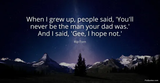 Torn, Rip. "When I grew up, people said, 'You'll never be the man your dad was.' And I said, 'Gee, I hope not.'." FixQuotes. January 15, 2026. https://fixquotes.com/quotes/when-i-grew-up-people-said-youll-never-be-the-man-87499/.