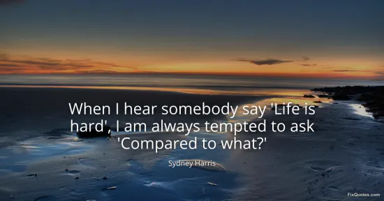 Harris, Sydney. (2026, January 14). When I hear somebody say 'Life is hard', I am always tempted to ask 'Compared to what?'. FixQuotes. https://fixquotes.com/quotes/when-i-hear-somebody-say-life-is-hard-i-am-always-162193/