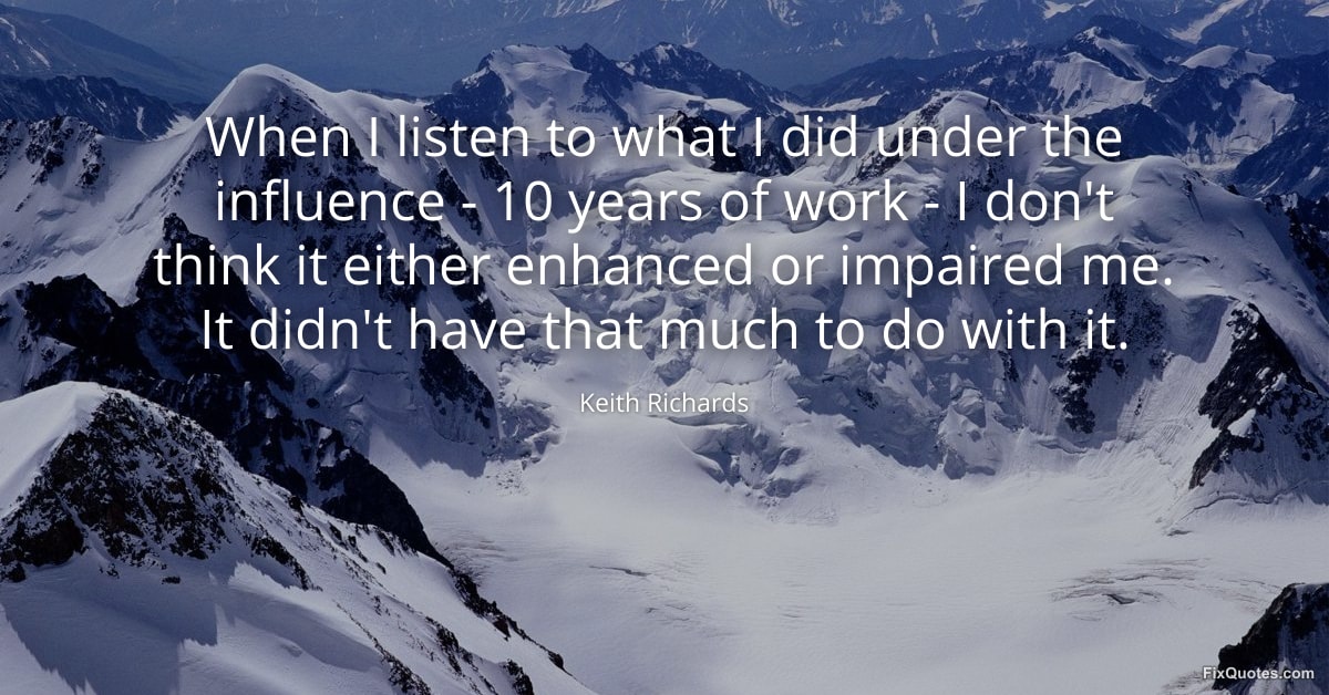 Richards, Keith. (2026, January 17). When I listen to what I did under the influence - 10 years of work - I don't think it either enhanced or impaired me. It didn't have that much to do with it. FixQuotes. https://fixquotes.com/quotes/when-i-listen-to-what-i-did-under-the-influence-28529/