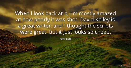 Berg, Peter. (2026, January 15). When I look back at it, I'm mostly amazed at how poorly it was shot. David Kelley is a great writer, and I thought the scripts were great, but it just looks so cheap. FixQuotes. https://fixquotes.com/quotes/when-i-look-back-at-it-im-mostly-amazed-at-how-165631/