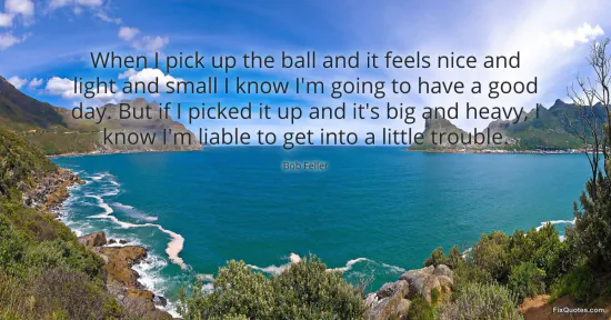 Feller, Bob. (2026, January 17). When I pick up the ball and it feels nice and light and small I know I'm going to have a good day. But if I picked it up and it's big and heavy, I know I'm liable to get into a little trouble. FixQuotes. https://fixquotes.com/quotes/when-i-pick-up-the-ball-and-it-feels-nice-and-50198/
