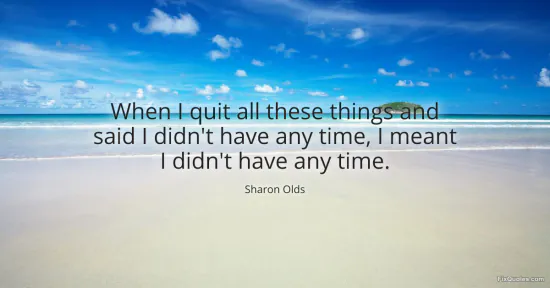 Olds, Sharon. (2026, January 16). When I quit all these things and said I didn't have any time, I meant I didn't have any time. FixQuotes. https://fixquotes.com/quotes/when-i-quit-all-these-things-and-said-i-didnt-83450/