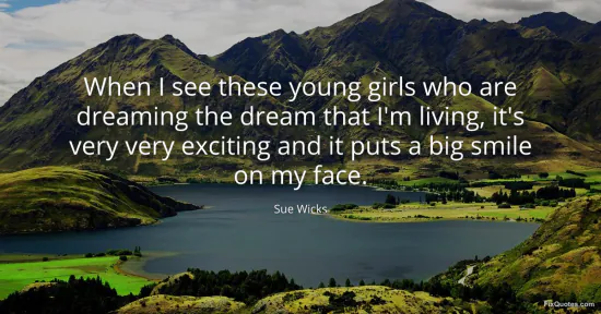 Wicks, Sue. "When I see these young girls who are dreaming the dream that I'm living, it's very very exciting and it puts a big smile on my face." FixQuotes. January 15, 2026. https://fixquotes.com/quotes/when-i-see-these-young-girls-who-are-dreaming-the-166719/.