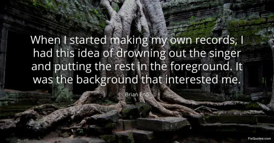 Eno, Brian. "When I started making my own records, I had this idea of drowning out the singer and putting the rest in the foreground. It was the background that interested me." FixQuotes. January 17, 2026. https://fixquotes.com/quotes/when-i-started-making-my-own-records-i-had-this-38606/.