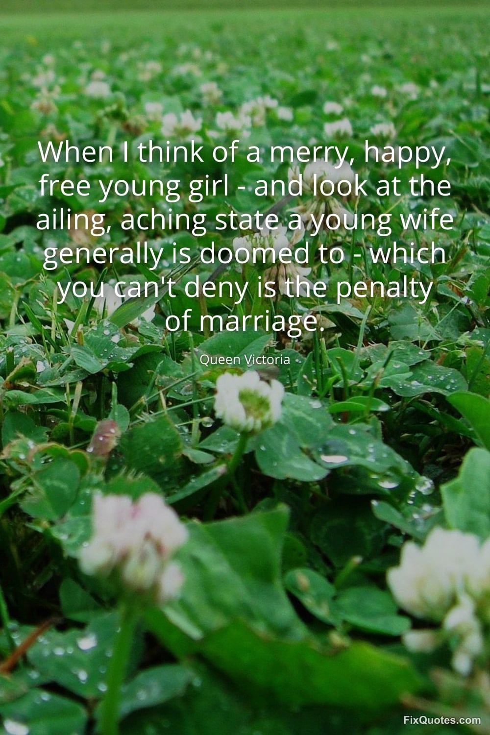 Victoria, Queen. (2026, January 18). When I think of a merry, happy, free young girl - and look at the ailing, aching state a young wife generally is doomed to - which you can't deny is the penalty of marriage. FixQuotes. https://fixquotes.com/quotes/when-i-think-of-a-merry-happy-free-young-girl-15479/
